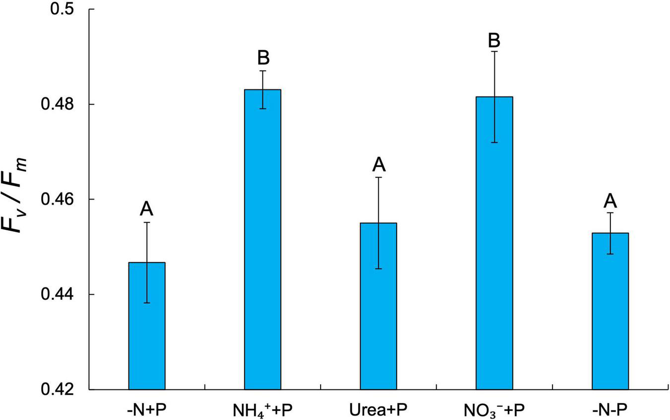 Ultimately, while Dolichospermum growth and N2 fixation rates can be responsive to fixed N, the differential effects of different fixed N species as well as fixed N and P co-limitation on members of this genus have not been investigated. Thus, the objective of this study was to quantify the effects of NH4+, NO3–, and urea, as well as fixed N and P co-limitation, on the growth, N2 fixation, photosystem II photosynthetic efficiency (Fv/Fm), toxin production, and genome-wide expression of Dolichospermum sp. 54, an ATX-A-producing taxon. We hypothesized that the availability of any of the three fixed N forms would lead to significant reductions in N2 fixation and increases in growth, while ATX-A cellular quotas would be directly controlled by the growth rates of Dolichospermum. These findings will likely be useful for predicting how CHABs dominated by Dolichospermum and ATX-A production respond to differing nutrient regimes.