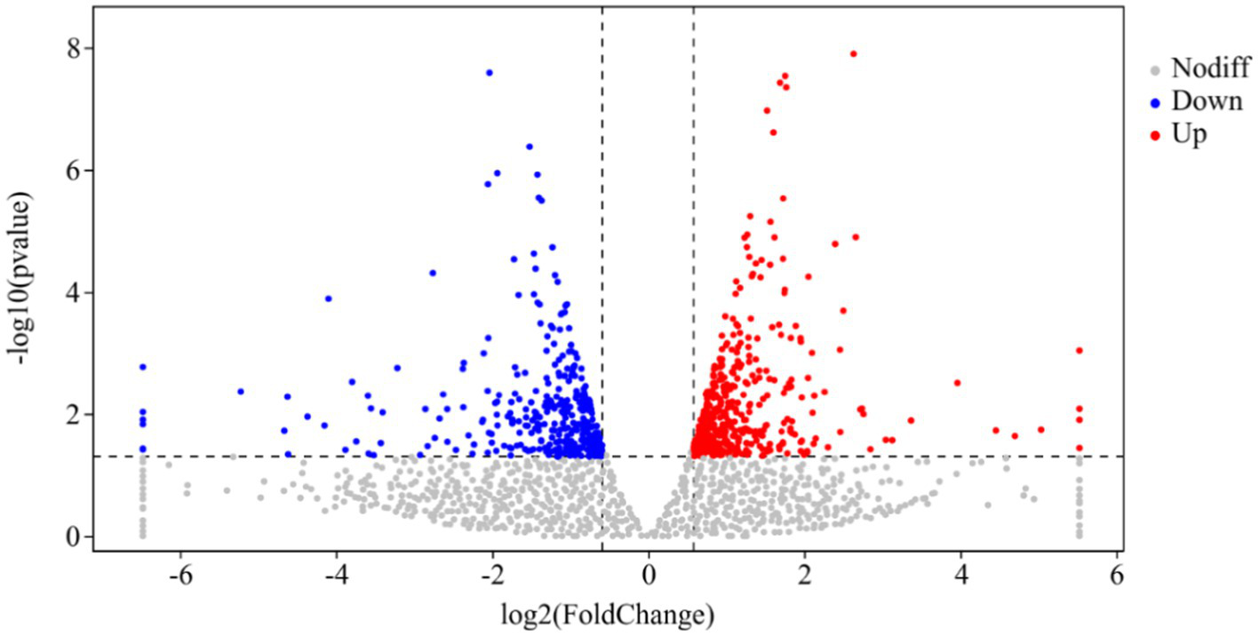 The differences in the gene expressions were analyzed by DESeq (1.39.0) with screened conditions as follows: expression difference multiple |log2FoldChange| > 1, significant p < 0.05. At the same time, R language Pheatmap (1.0.8) software package was used to perform bi-directional clustering analysis of different genes of samples. The heat map was got according to the expression levels of the same gene in different samples and the expression patterns of different genes in the same sample with Euclidean method to calculate the distance and Complete Linkage method to cluster.
