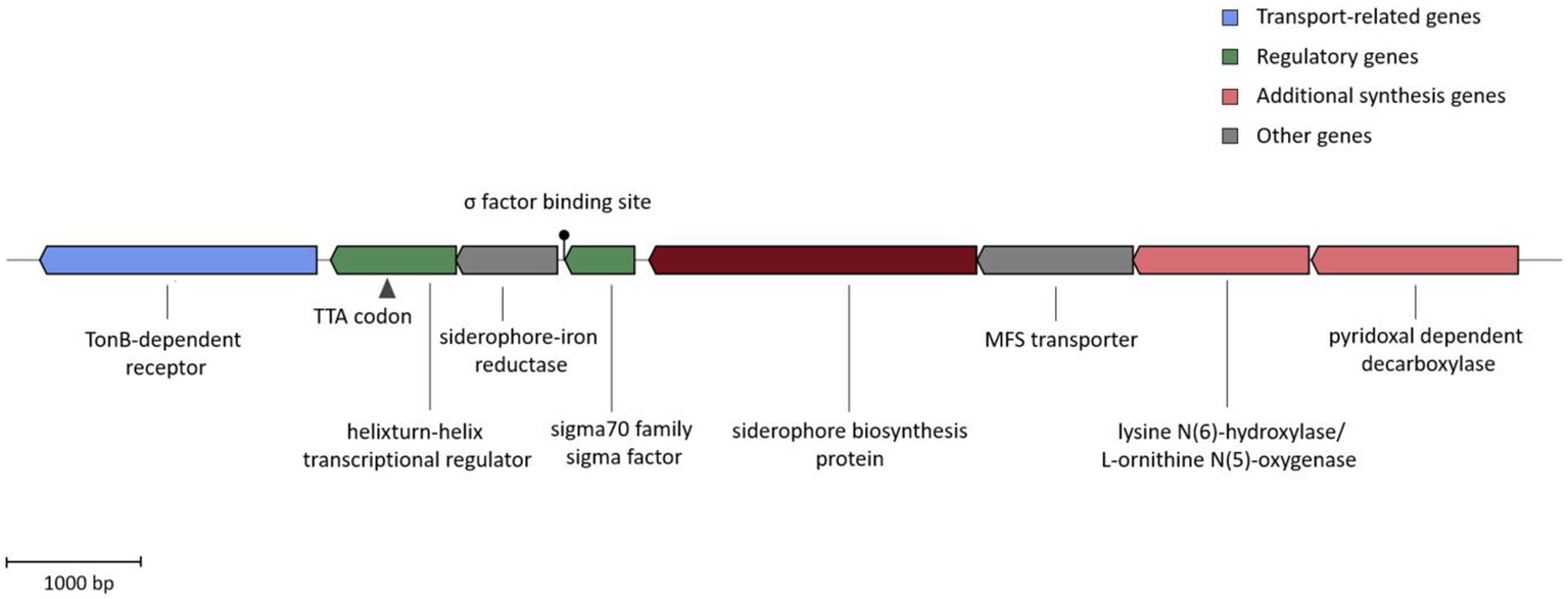 Additionally, the draft genomes were investigated for the presence of siderophore biosynthetic gene clusters using the antibiotics and secondary metabolite analysis shell (AntiSMASH) 6.0 online tool (Blin et al., 2021).