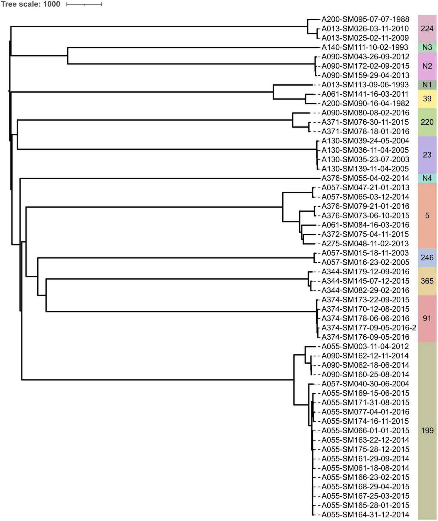 2Total number of isolates is 54; 3 isolates that did not correspond to any shared/non-shared STs are not included here.