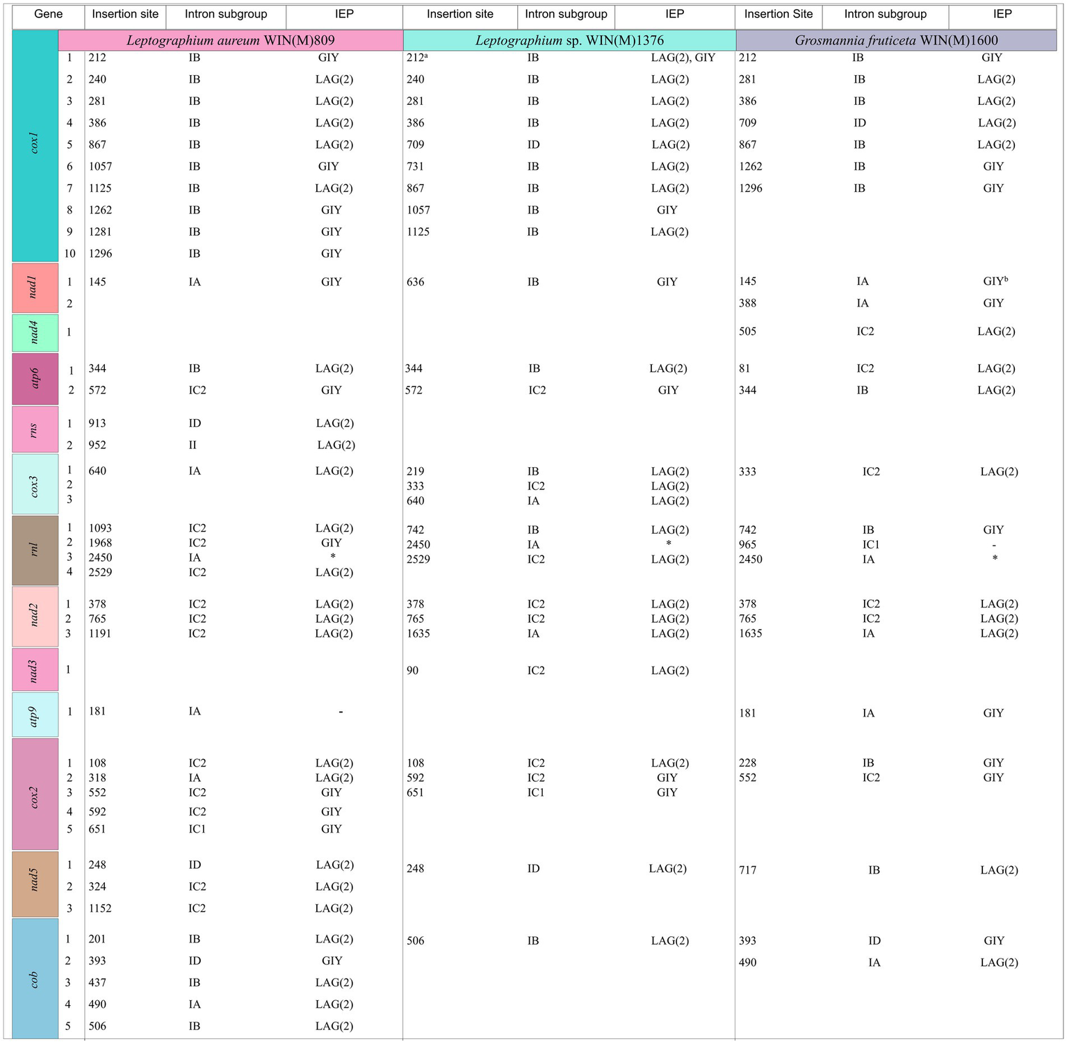 Leptographium, Ophiostomatales, mobile introns, phylogeny, complex introns