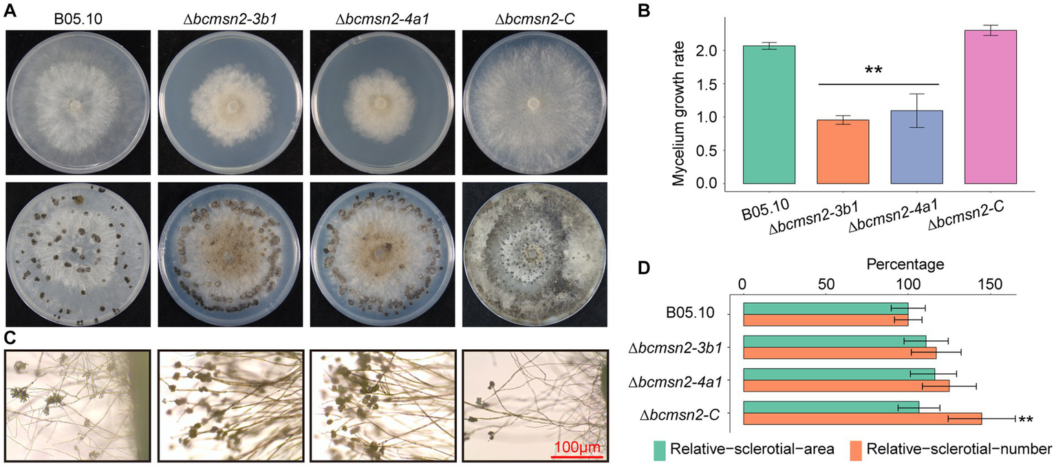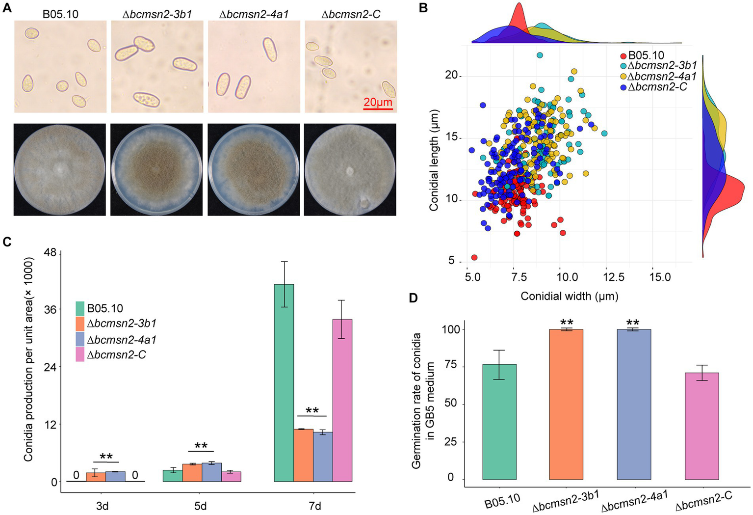 3.3. Effect of BcMsn2 deletion on vegetative growth and reproductive differentiation
