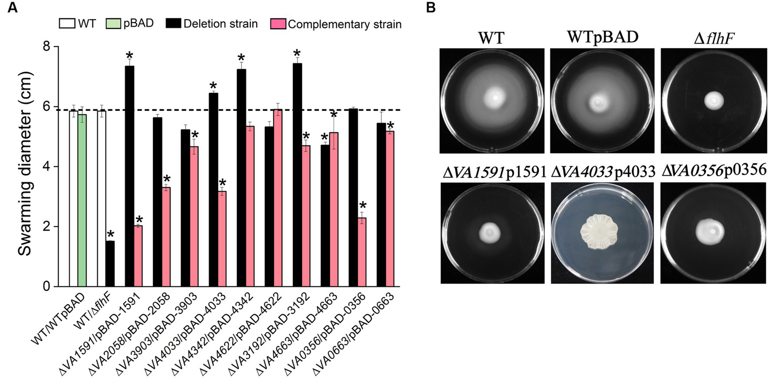 Vibrio alginolyticus is one of three most abundant Vibrio species found in marine and estuarine environments worldwide, which has caused frequent outbreaks of high-mortality vibriosis in aquatic animals (e.g., fish, shrimp and shellfish) and significant economic losses to the global aquaculture industry (Xie et al., 2005; Jacobs Slifka et al., 2017; Ibangha et al., 2023; Yu et al., 2023). The transition from a planktonic to a biofilm lifestyle is key to the survival and pathogenicity of Vibrio spp. (Baker-Austin et al., 2018). Bacterial cells encased in biofilms exhibit a range of emergent properties that are quite different from free-living cells, such as enhanced social cooperation, more efficient resource capture and increased resistance to antimicrobials (Flemming et al., 2016). Therefore, biofilms provide such an important fitness advantage for Vibrio, enhancing environmental adaptations and enabling them to persist in different niches, especially within the host (Teschler et al., 2015).
