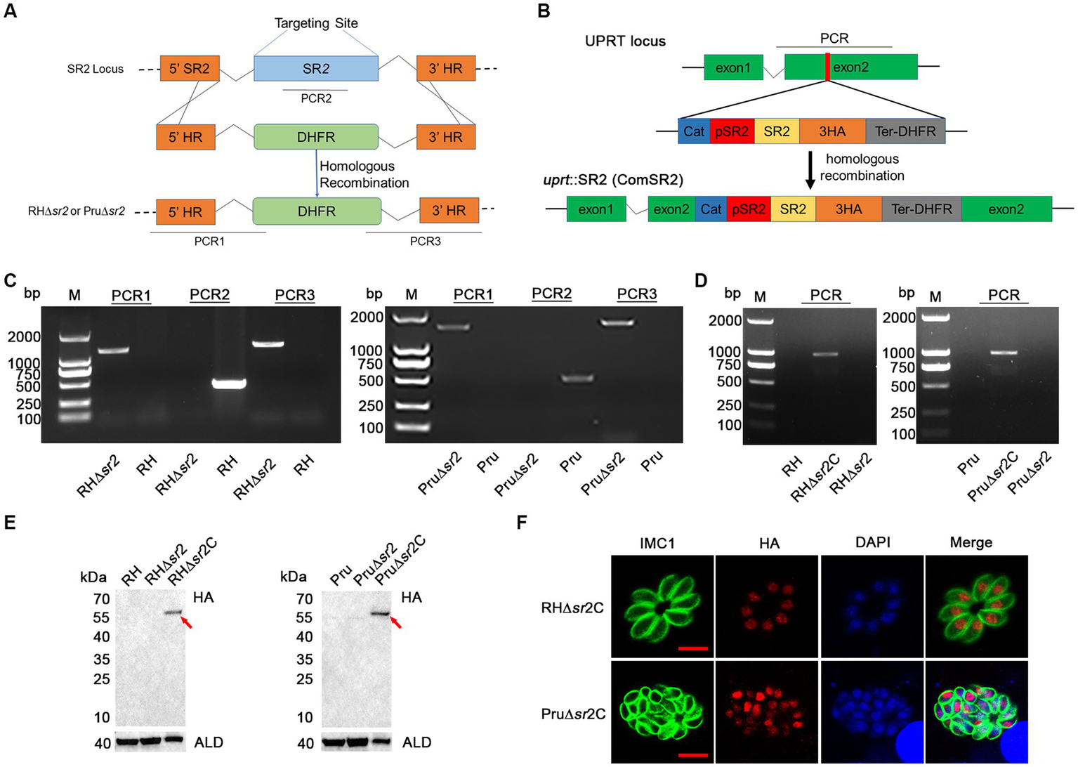 3.2 Successful disruption and complementation of SR2 in Toxoplasma gondii RH and Pru strains
