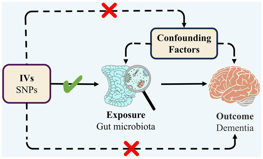Mendelian randomization (MR) is a study method that explores causal relationships between exposure factors and outcomes using single nucleotide polymorphisms (SNPs) as instrumental variables (IVs; Burgess et al., 2017), which is consistent with the principle of random allocation of genetic variation during meiosis, avoiding the influence of confounding variables and the potential for reverse causality (Sekula et al., 2016). This work employed GWAS summary statistics of GW taxa associated with dementia and their subtypes for MR analysis in order to evaluate the risk relationship between genetically determined GW taxa and dementia and its subtypes, which provides evidence for existing findings, new research ideas for pathogenesis that has not yet been clarified, and new directions for the early diagnosis, avoidance, and therapy of all types of dementia.