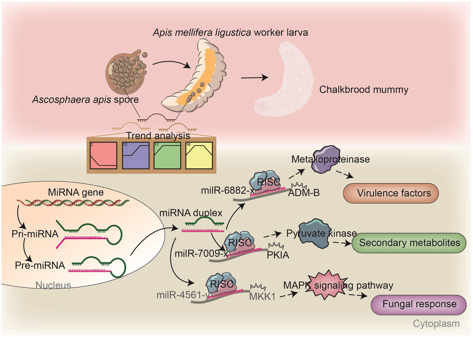 Ascosphaera apis , chalkbrood, Apis mellifera , larva, milRNA, regulation, infection mechanism