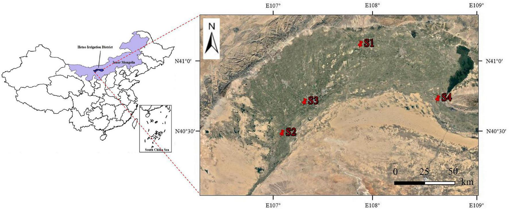 | S3 | Houjia Gedang village, Linhe District | 40°43′5.94′′ N, 107°18′13.60′′ E |