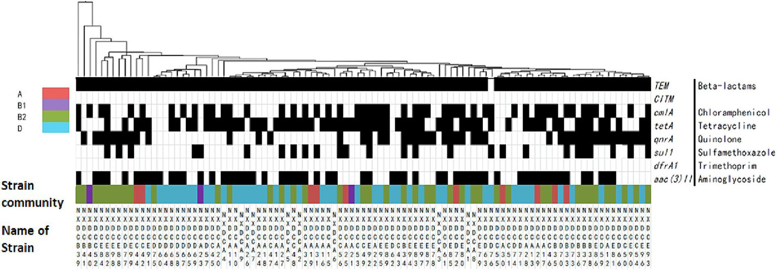 Furthermore, the inefficient treatment of uterine infections caused by ExPEC and the emergence of multi-drug resistance in pathogenic bacteria are associated with the type of drug-resistance genes carried by the strains. Existing strains carrying TEM-type β-lactams are relatively resistant to penicillin and broad-spectrum cephalosporins. Furthermore, most resistance genes can be transferred between different serotype strains of E. coli by plasmids, transposons, and integrons, which induce the emergence of multi-drug resistant strains (Ban et al., 2015). However, the drug resistance genes carried by E. coli strains may vary considerably attributed to geographical differences.