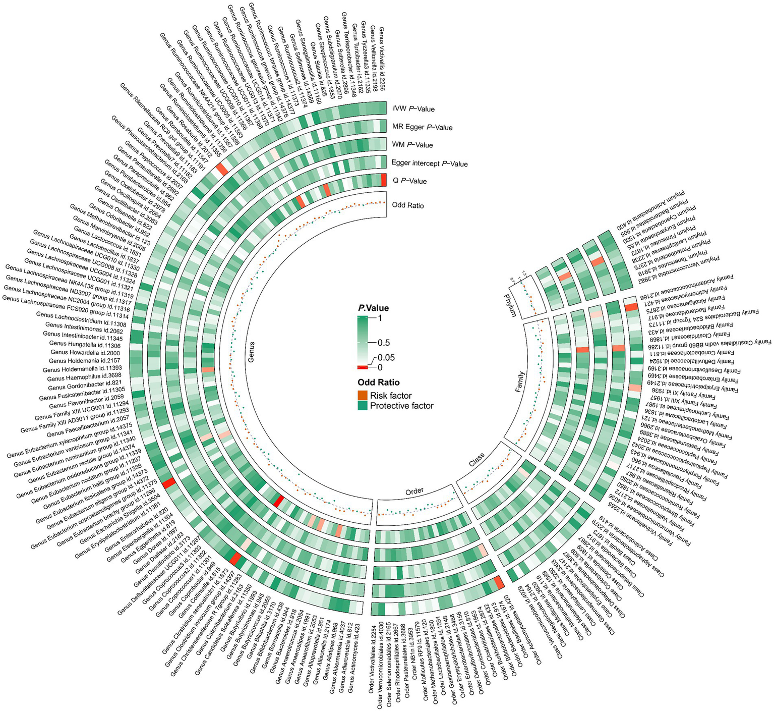 | Family Rikenellaceae | MR Egger | 19 | 0.477 | 1.233 (0.701–2.171) |
