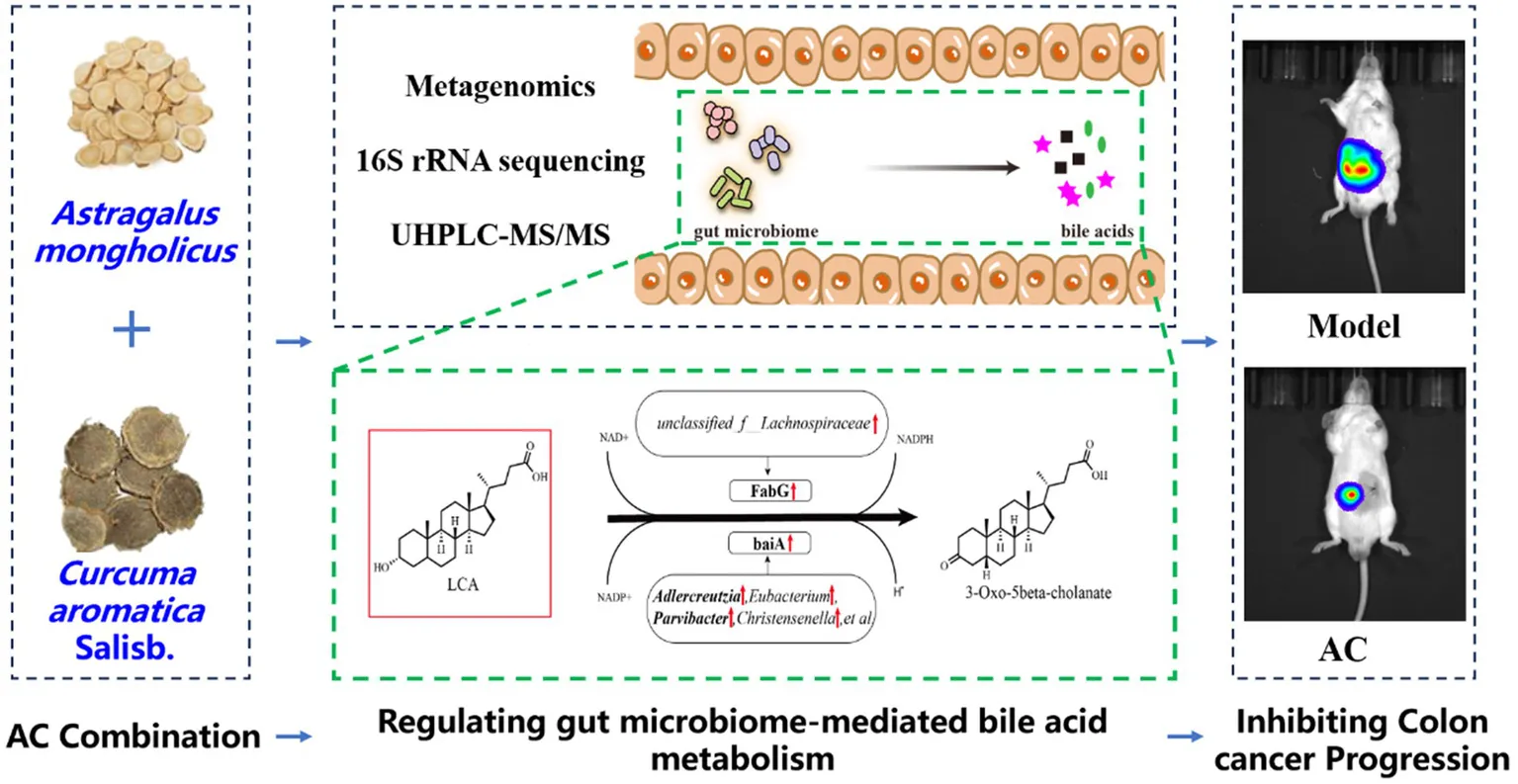 Keywords: colon cancer, gut microbiome, bile acid, Astragalus mongholicus Bunge and Curcuma aromatica Salisb., FabG, baiA