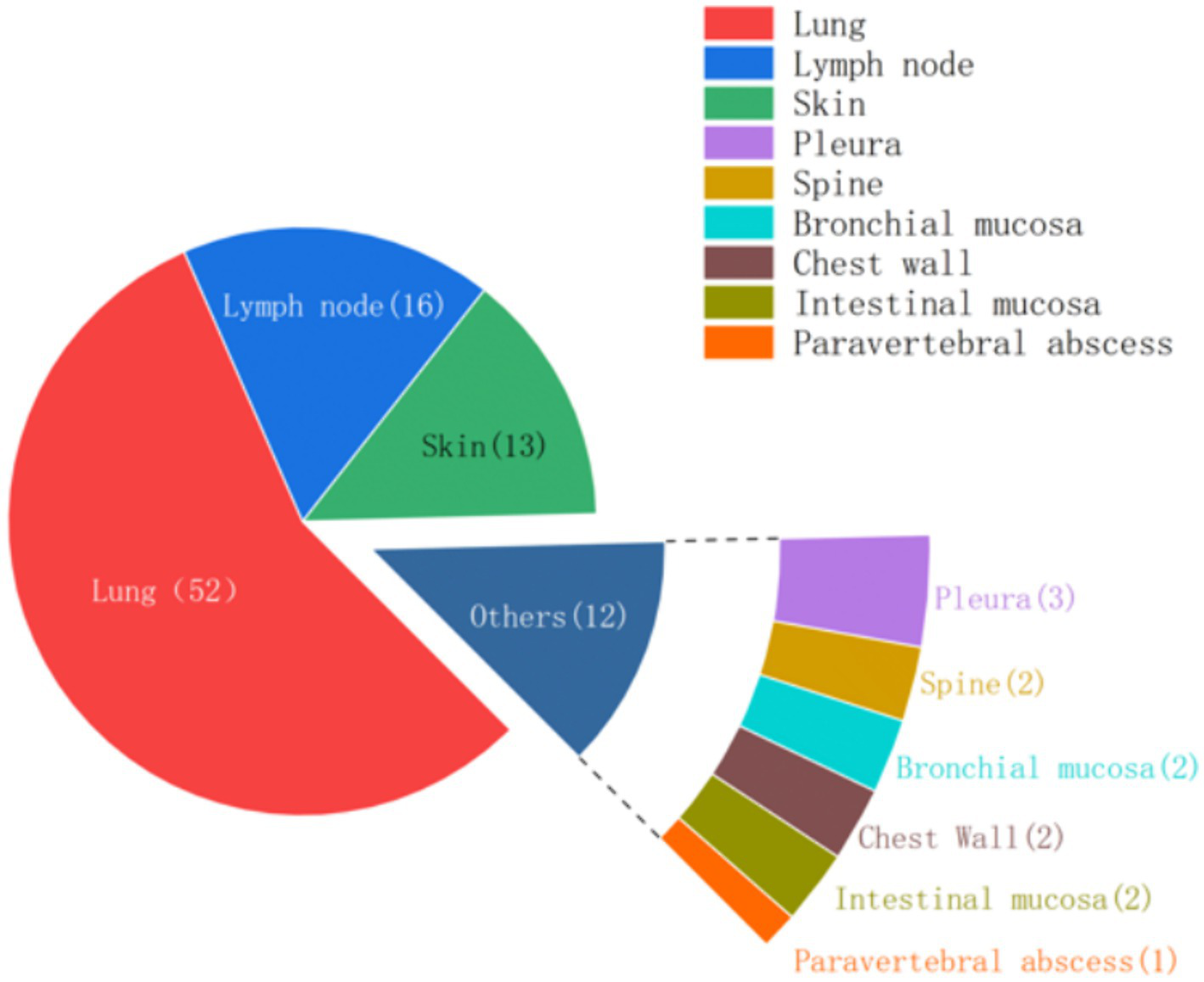 Fan chart of positive clinical specimens from various tissues.