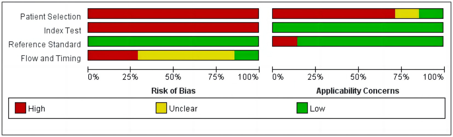 Whiting P. F. Rutjes A. W. S. Westwood M. E. Mallett S. Deeks J. J. Reitsma J. B. et al . (2011). QUADAS-2: a revised tool for the quality assessment of diagnostic accuracy studies. Ann. Intern. Med.155, 529–536. doi: 10.7326/0003-4819-155-8-201110180-00009