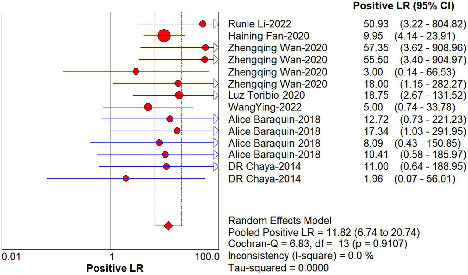 Forest plot of estimate PLR for quantitative analysis of circulating cell-free DNA in the diagnosis of Echinococcosis.