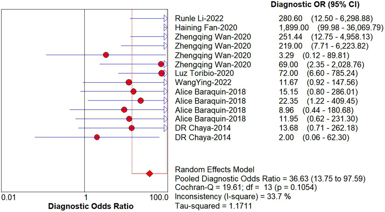 Forest plot of DOR for quantitative analysis of circulating cell-free DNA in the diagnosis of Echinococcosis.