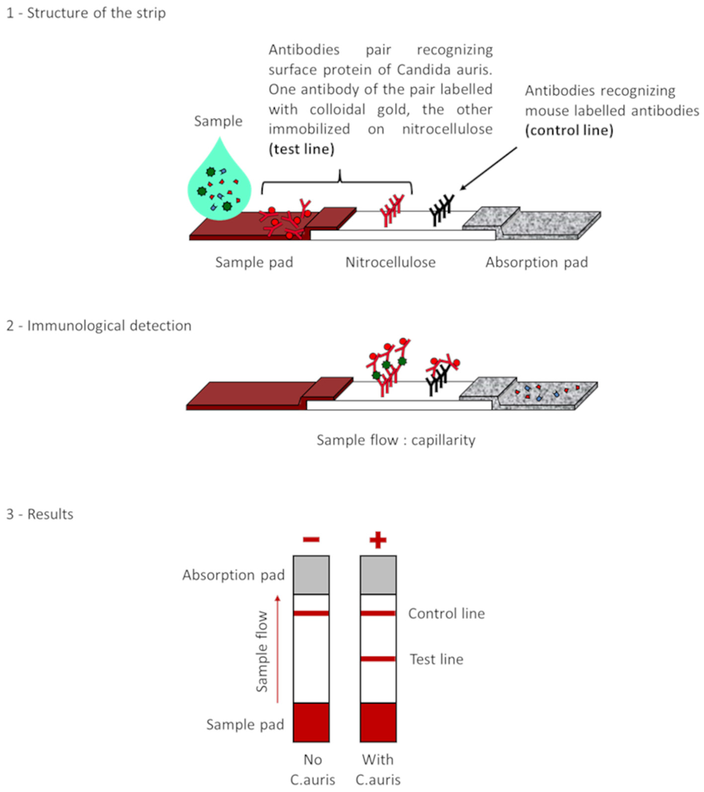 Principle of the lateral flow immunoassay Candida auris prototype.