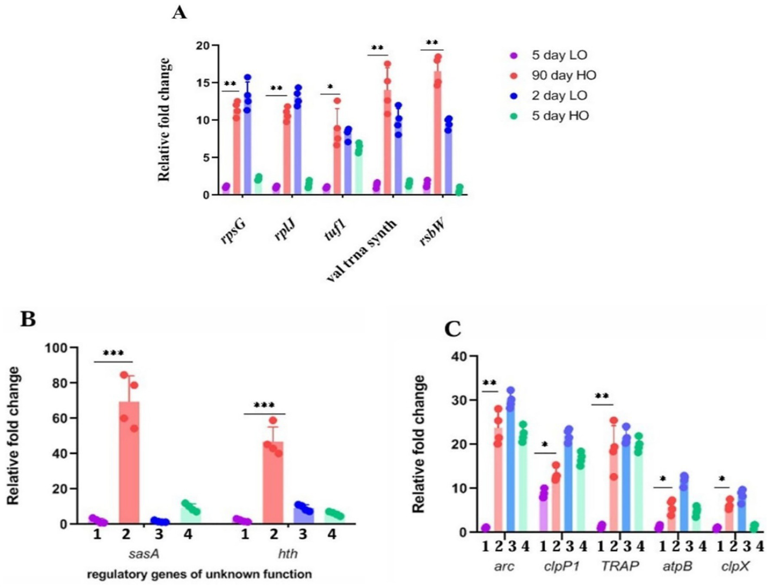 LTSP, longevity, stationary phase, clpX protease, sasA histidine kinase