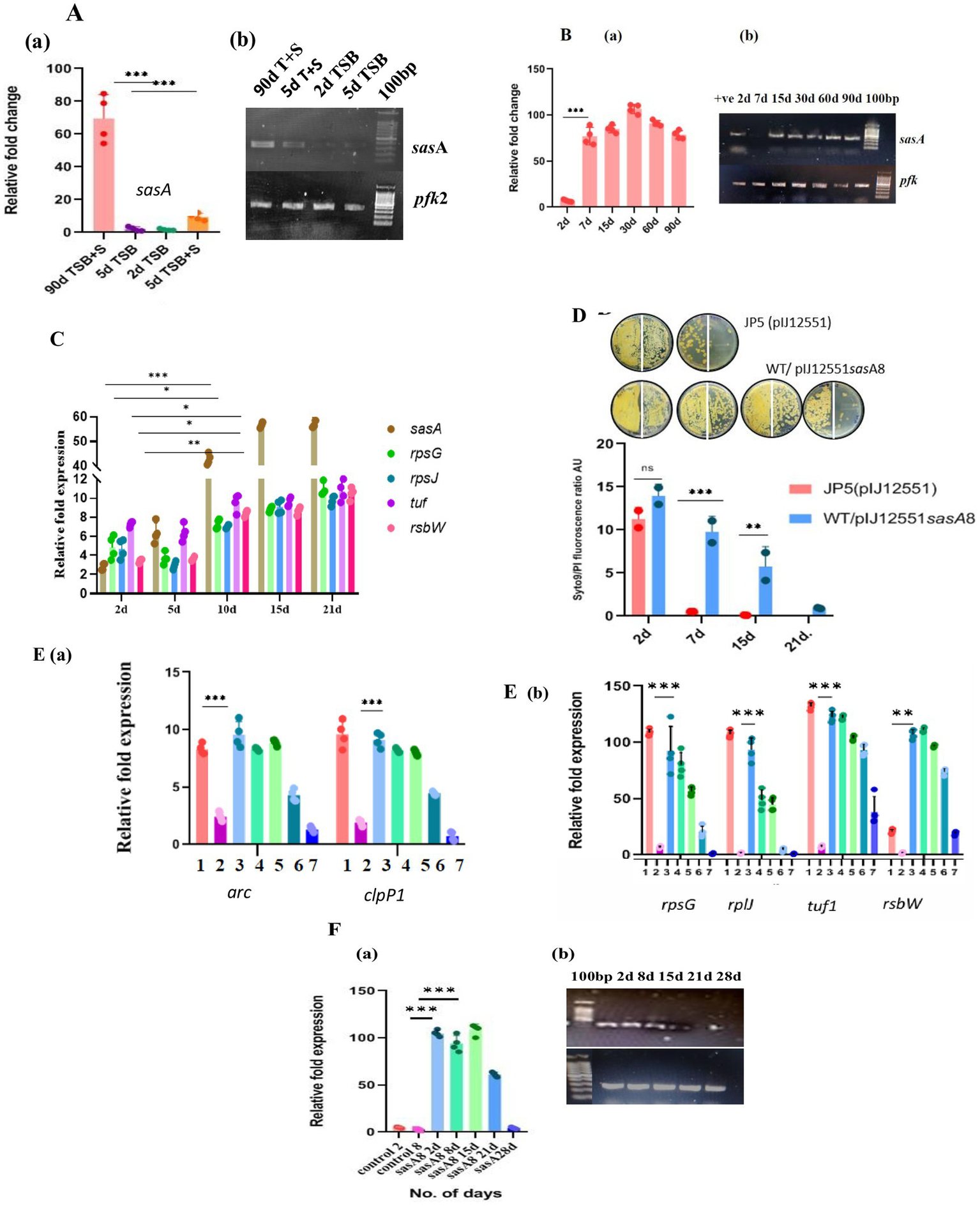 Notwithstanding the inadequacies, we investigated the conditional LTSP state of S. minutiscleroticus mycelial cells in the submerged growth in batch culture using multiple approaches, including genetic. We identified and validated, by gene disruption and multicopy expression studies, the importance of (p)ppGpp synthetase relA, clpX encoding chaperone, and histidine kinase, sasA8, affecting the long-term viability of mycelial cells.