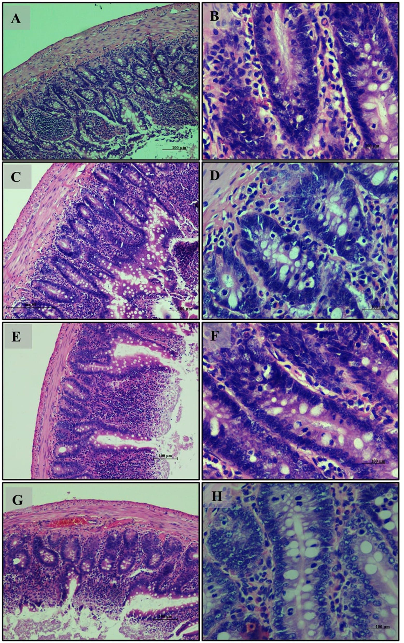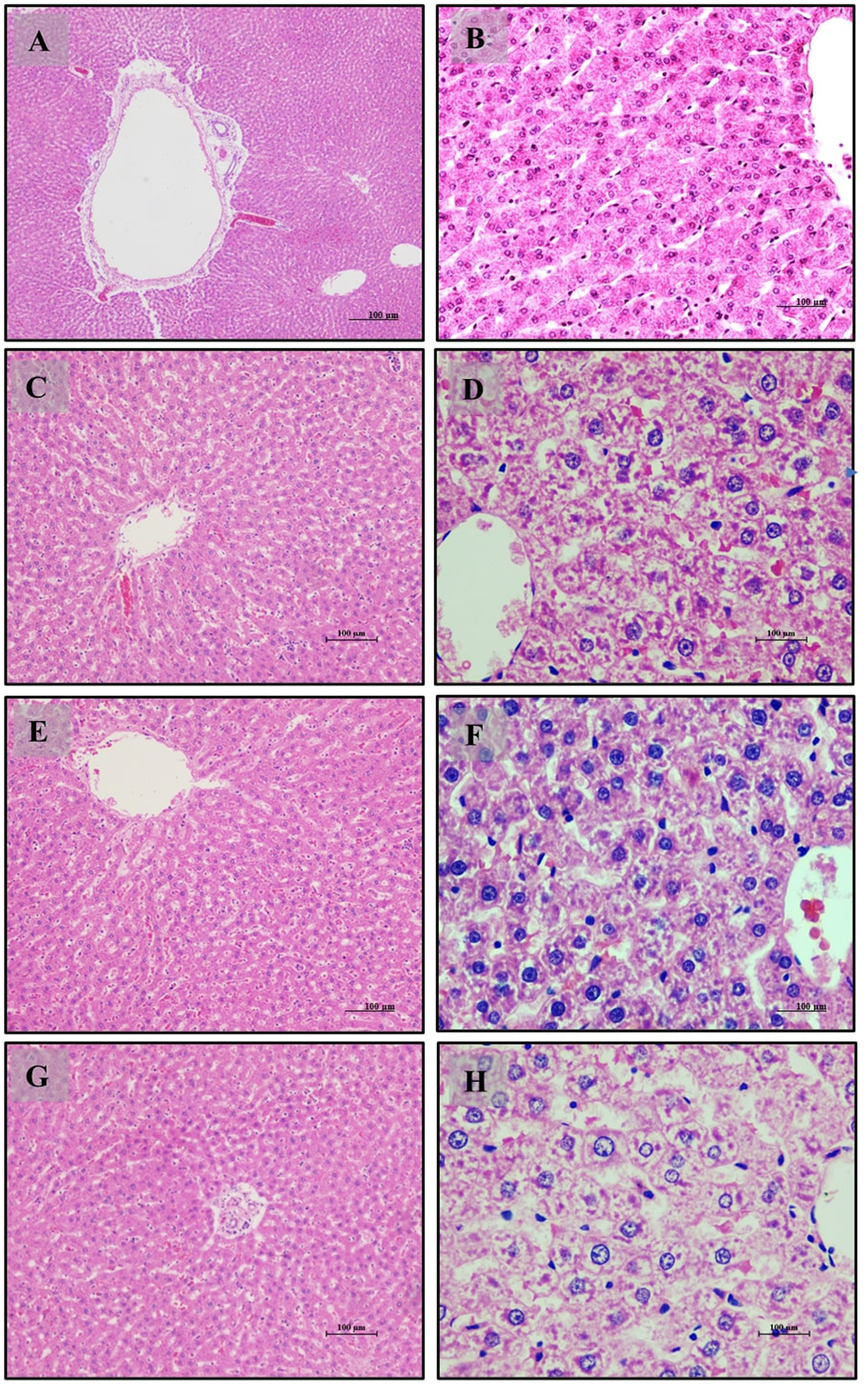For histopathological analysis, liver, kidney, muscle, pancreas, and intestinal tissues were sectioned and stained with hematoxylin and eosin (H&E). The stained sections were examined using a bright-field microscope (Labomed, Burlington, NC, USA) at, ×20 & ×40.