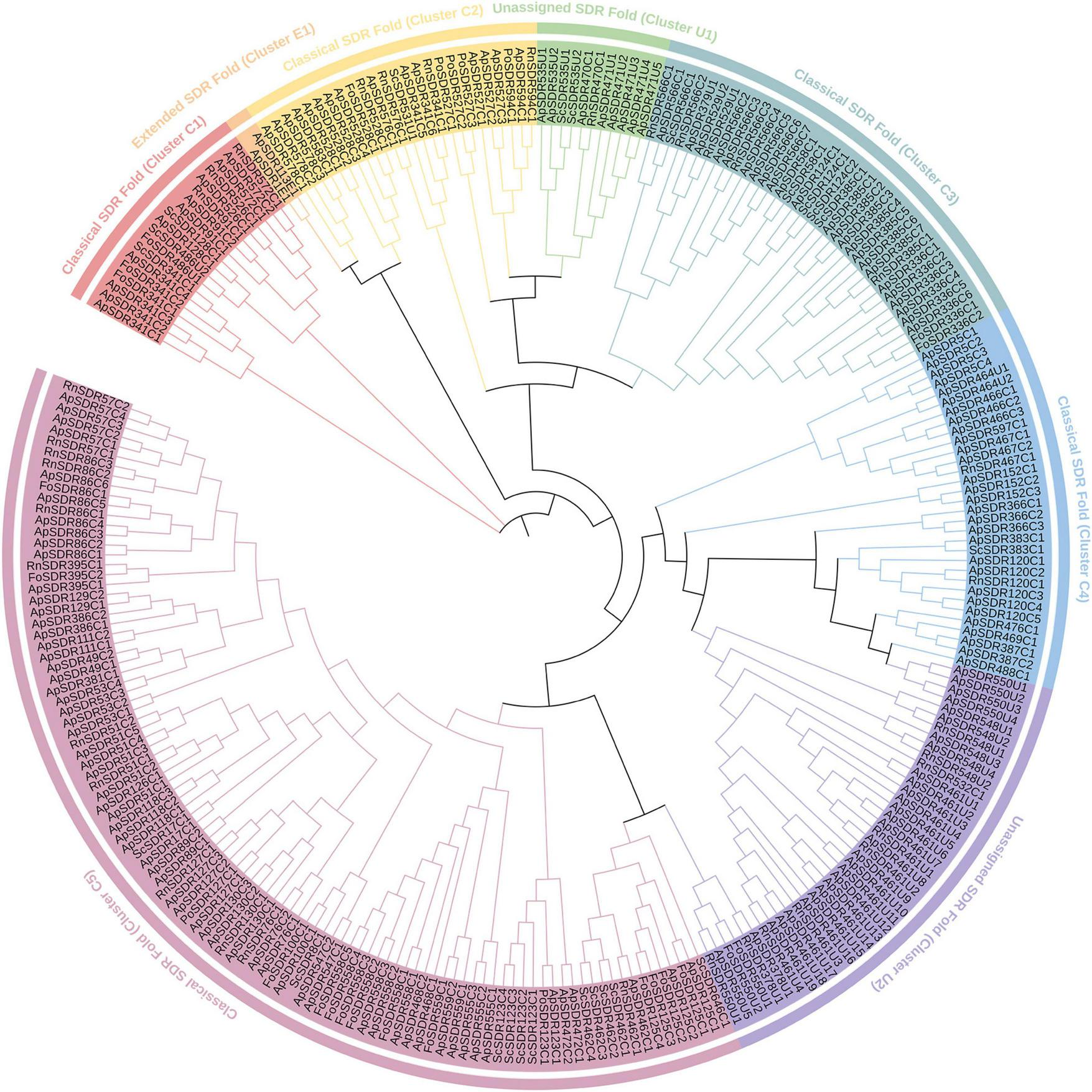 Phylogenetic relationships and functional annotation of ApSDRs