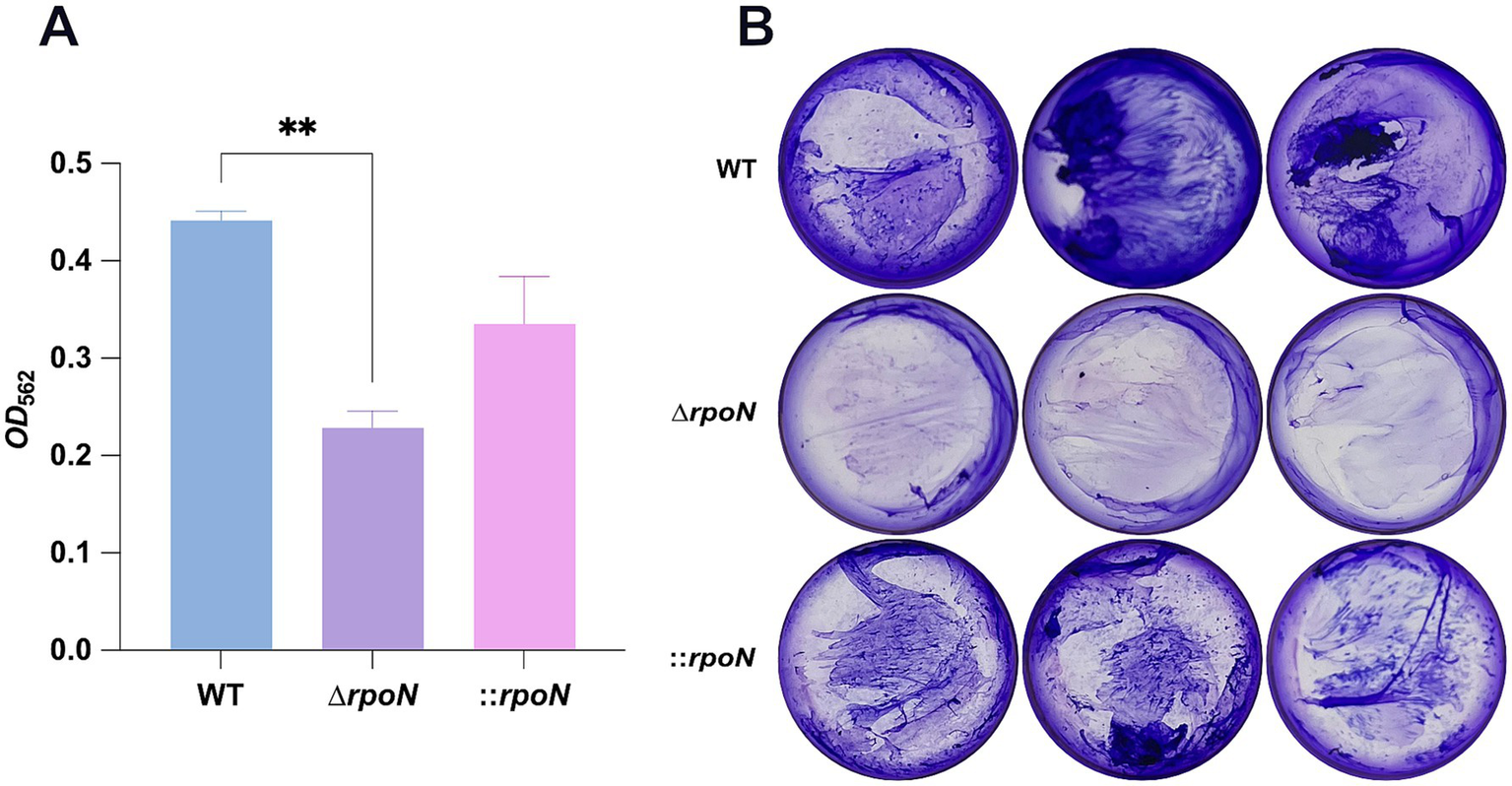 3.5 The ΔrpoN mutant exhibits reduced biofilm formation