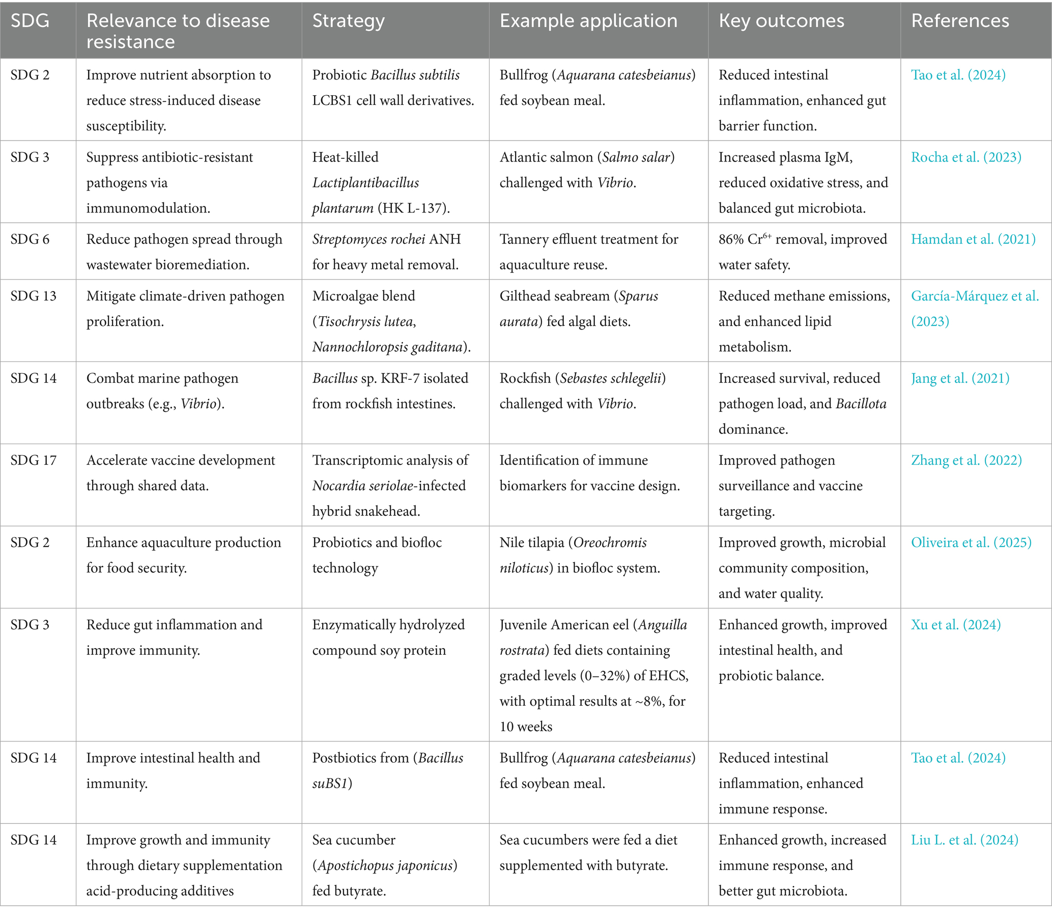Table 3. Microbiome engineering strategies aligned with un sdgs to enhance disease resistance in aquaculture.