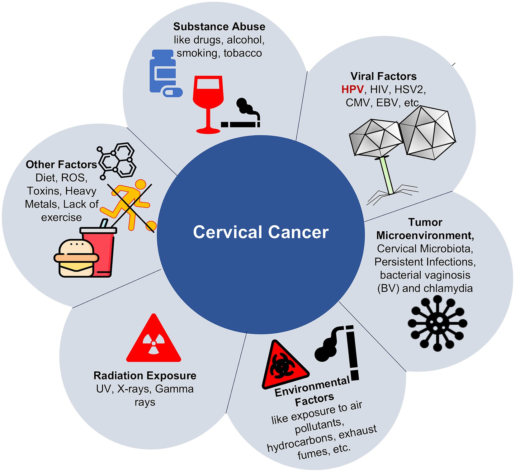 Over the past few decades, extensive research into the natural history of cervical cancer has established that persistent infection with certain high-risk human papillomavirus (HPV) types is the primary etiological factor driving the disease’s development (Chan et al., 2019). Since the early 1980s, a strong and well-documented association has been established between human papillomavirus (HPV) infection and cervical squamous cell carcinoma. Notably, the strength of this association surpasses that observed between tobacco use and lung cancer (Chan et al., 2019). Around 30 sexually transmitted HPV types have been identified that can primarily infect the cervix, vagina, vulva, penis, and anus. Notably, one or more of these types are found in 99.7% of cervical squamous cell carcinoma cases, highlighting their crucial role in the pathogenesis of the disease (Chan et al., 2019; Walboomers et al., 1999).