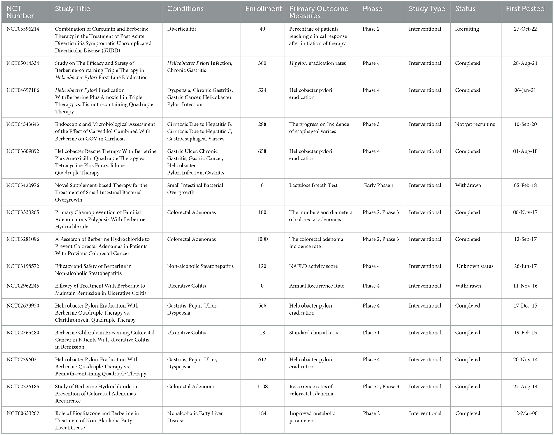 Table 1. Clinical studies related to BBR in Clinicaltrials.gov.