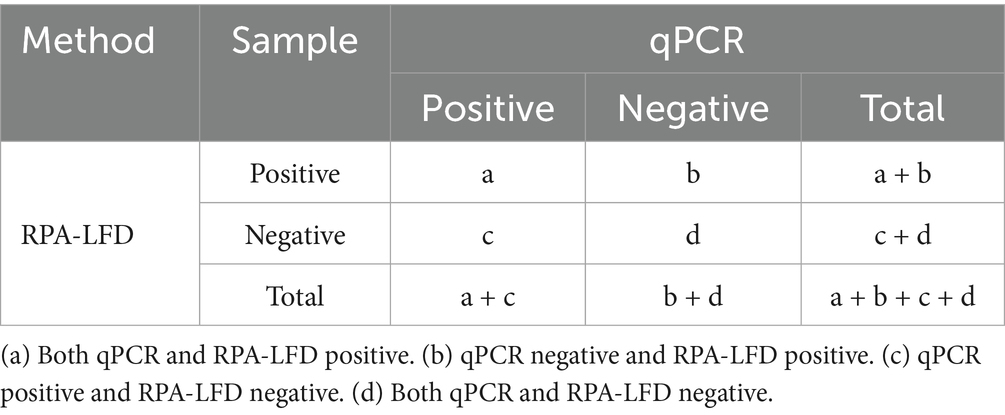 2.5 Analysis of the specificity, sensitivity, and limit of blank of the RPA-LFD assay