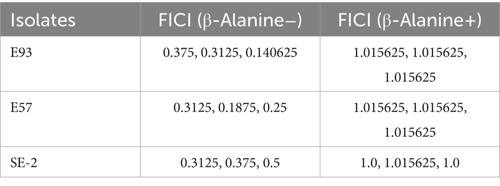 Table 2. Fractional inhibitory concentration index (FICI) of tested strains before and after the addition of β-Alanine (a competitive inhibitor of taurine).
