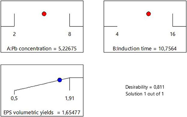 Figure 1. Desirability analysis for the optimization of Pb concentration and induction time in EPS production.