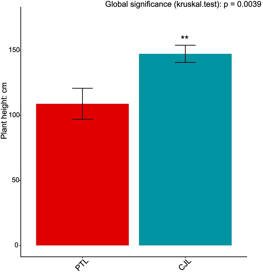 Plant height was measured using a ruler with 1 mm precision, recording the vertical distance from the soil surface at the root collar to the apical meristem. Three replicate measurements were taken per plant.