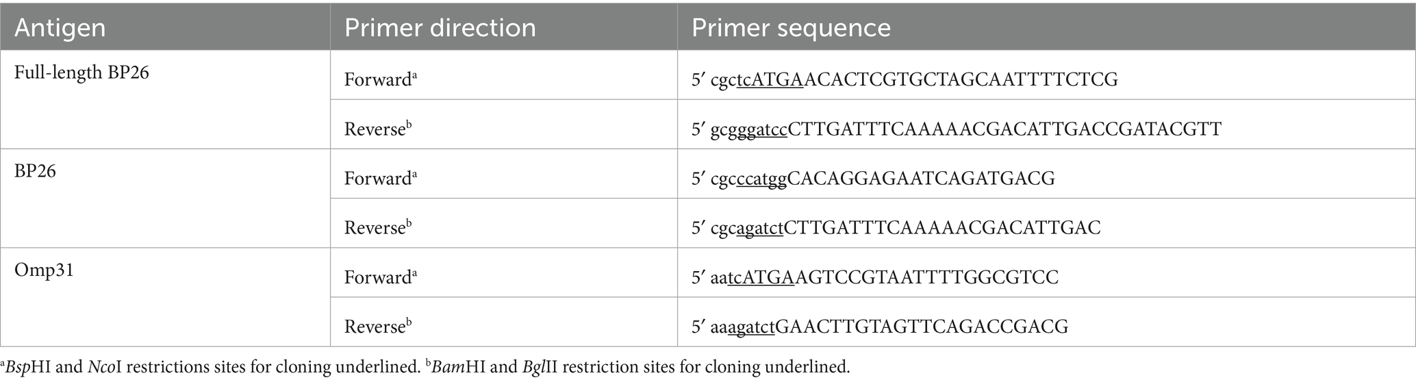 Table 1. Primer sequences for cloning of BP26 antigen.