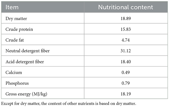 Roughage plays a pivotal role in mutton sheep production systems, as high-quality roughage resources provide abundant nutrients to enhance growth performance and ensure healthy development. Roughages typically constitute 20–60% of ruminant diets, and their characteristics and costs are critical determinants of production performance, product quality, and profitability in livestock farming (Yi et al., 2022; Patra, 2012). However, the escalating demand for intensive animal production has exacerbated shortages of premium roughage resources, posing a significant constraint to sustainable livestock industry development. Current livestock production systems employ three primary strategies to secure high-quality roughage: (1) utilization of fermented crop straw (Adesogan et al., 2019), (2) increased integration of whole-plant corn silage (Ferraretto et al., 2018), and (3) incorporation of agricultural byproducts (e.g., distillers' grains) as alternative feed ingredients (Niroula et al., 2019). Nevertheless, these approaches face inherent limitations: fermented straw retains high lignin concentrations, large-scale corn silage production may intensify competition between human and livestock feed resources, and the supply of agricultural byproducts such as distillers' grains often proves inconsistent.