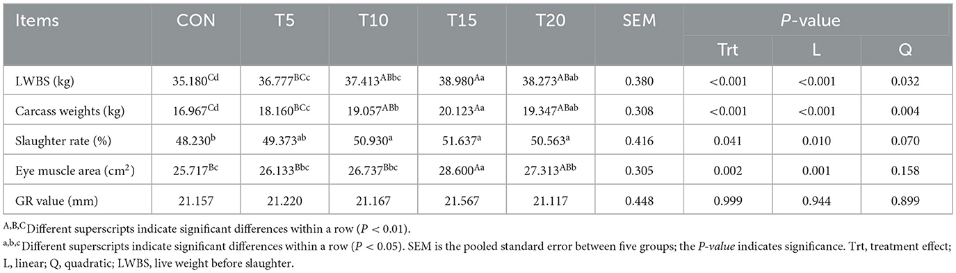 Effect of dietary HWS on the slaughter performance and economic benefits from the experimental sheep