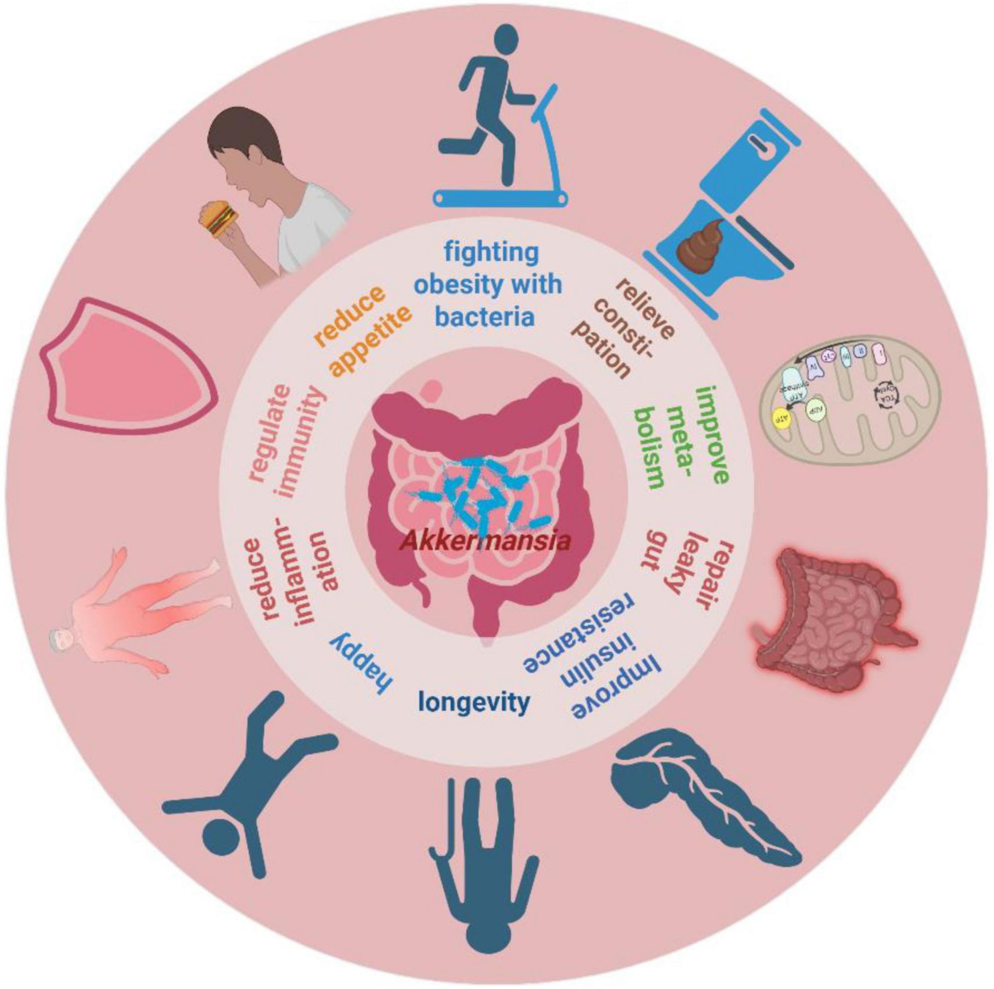 Figure 1. The potential roles of A. muciniphila for host health. Created in BioRender. Xin, M. (2025), https://biorender.com/l5m3y5r.