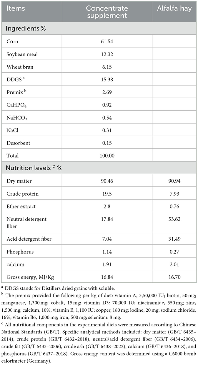 Blood samples were collected with non-anticoagulation vacuum blood vessels before morning feeding after a 12-hr fast the day before slaughter. Serum was harvested following centrifugation at 3,000 × g for 10 min at 4°C and subsequently frozen at −80°C until analysis. The centrifuge model used in this process is TDL-80–2B, manufactured in Shanghai, China.