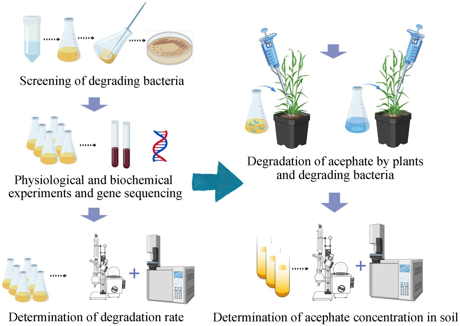 Methods: Acephate-degrading bacteria were isolated from soil via enrichment culture with acephate as the sole carbon source, and their degradation efficiency was subsequently evaluated. Subsequently, a pot experiment was designed to investigate the efficiency of the combined remediation of soil acephate through the synergistic action of the isolated bacteria and plants.