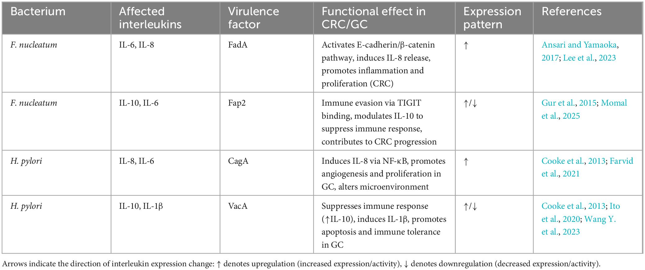 Keywords: Fusobacterium nucleatum, Helicobacter pylori, colorectal cancer, gastric cancer, red meat, processed meat, virulence factors