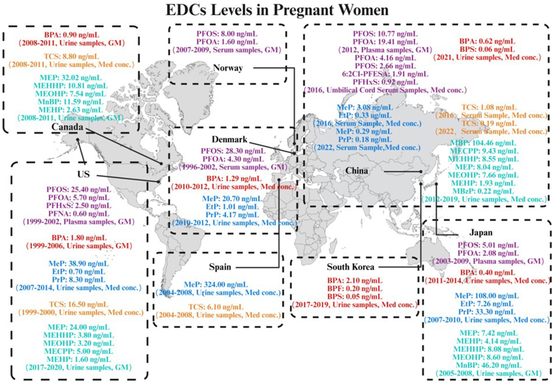 Figure 2. Prenatal exposure to endocrine-disrupting chemicals (EDCs) and risk of atopic dermatitis in offspring: an international perspective.