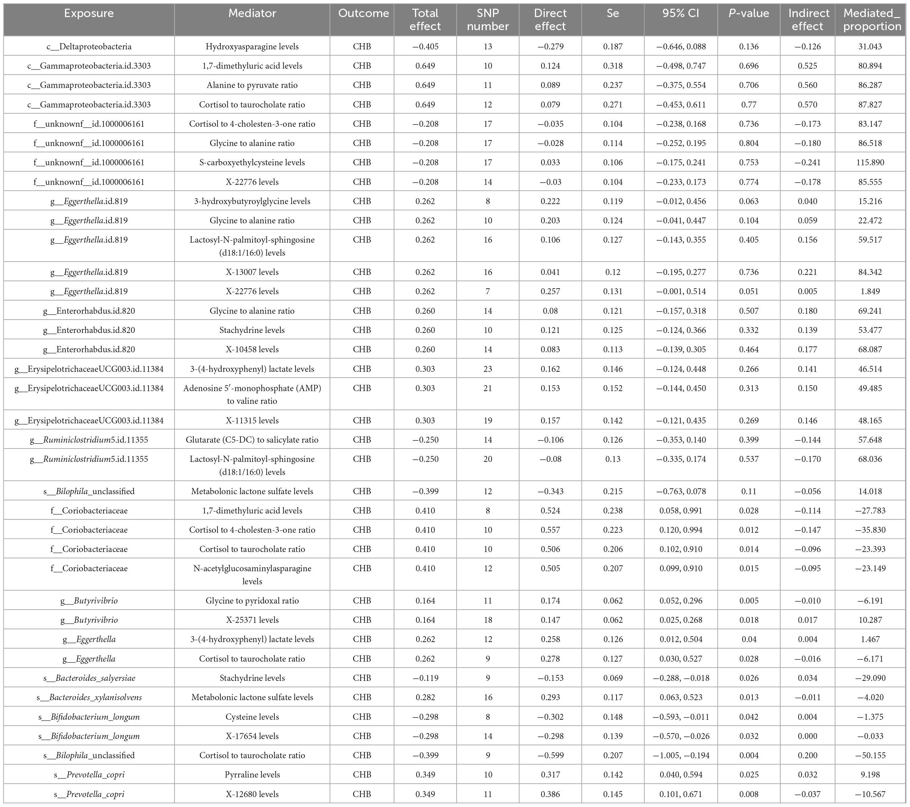 Table 2. Multivariable Mendelian randomization (MVMR) reveals the potential mechanisms among gut microbiota, metabolites and CHB.