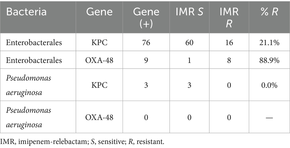 Table 3. Resistance profile to imipenem-relebactam of carbapenemase-producing Enterobacterales and Pseudomonas.