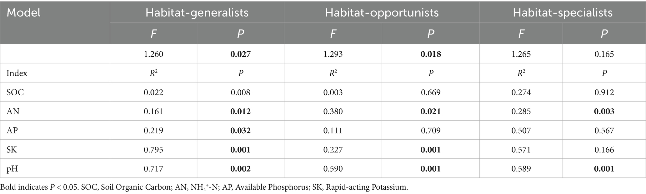 Table 4. Results of Monte Carlo test for Redundancy Analysis (RDA) of soil properties on each habitat-specialization group.