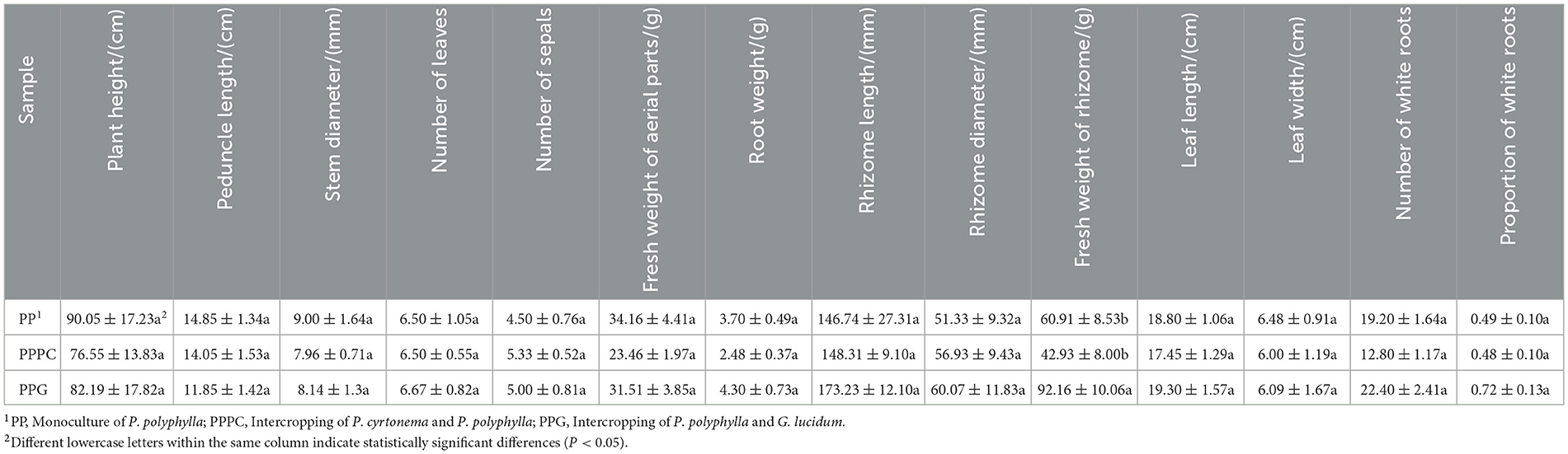 3.1 Influence of intercropping systems on the agronomic characteristics of P. polyphylla
