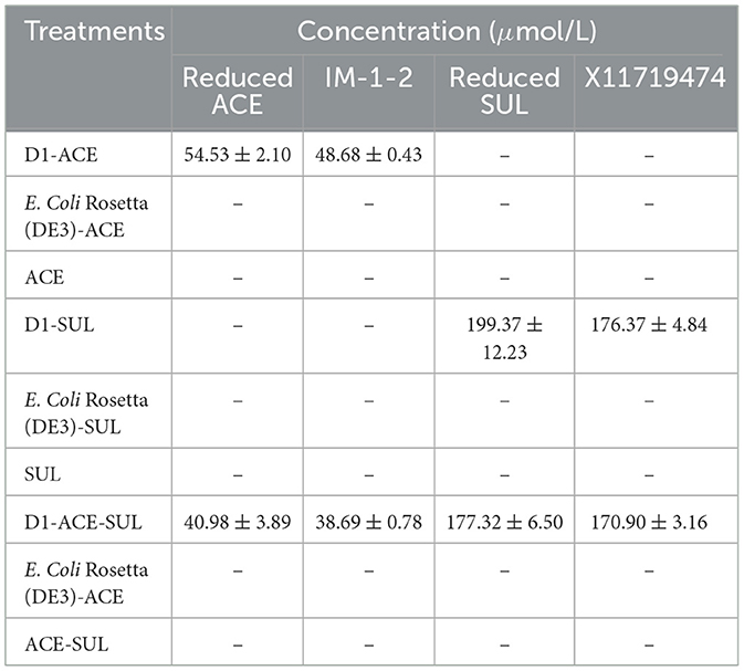 Photocatalytic degradation (using TiO2 and light produced by a Xe lamp) and oxidation during Fenton's reactions have been used to remove ACE from water samples (Mitsika et al., 2013; Borges et al., 2016). Physical and chemical degradation methods require extreme conditions, are expensive, and cause environmental contamination. SUL was either not degraded or only slightly degraded during hydrolysis and was not photodegraded in acidic water or sterilized soil (Yang et al., 2022). Regarding agricultural production inputs, approximately 82% of pesticides undergo biodegradation, with microorganisms playing a pivotal role in pesticide degradation (Maggi et al., 2023). Microbial remediation serves as a critical environmental remediation method for organic pollutants, demonstrating substantial application prospects and potential (Eisenstein, 2025). Compared to chemical and physical methods, microbial remediation exhibits economic efficiency, operational simplicity, and minimal environmental impact, aligning with ecological civilization and sustainable development strategies. Many microorganisms have been found to degrade ACE, such as the bacterium Actinomycetes Streptomyces canus CGMCC 13662, Stenotrophomonas maltophilia CGMCC 1.1788, and Variovorax boronicumulans CGMCC4969, as well as the yeast Rhodotorula mucilaginosa (Dai et al., 2010; Guo et al., 2019). Many microbes have been found to degrade SUL, such as Aminobacter sp. CGMCC 1.17253 and Pseudomonas stutzeri CGMCC 22915 (Yang et al., 2020; Jiang et al., 2022). However, no studies have investigated the degradation of ACE and SUL co-contaminants to date.