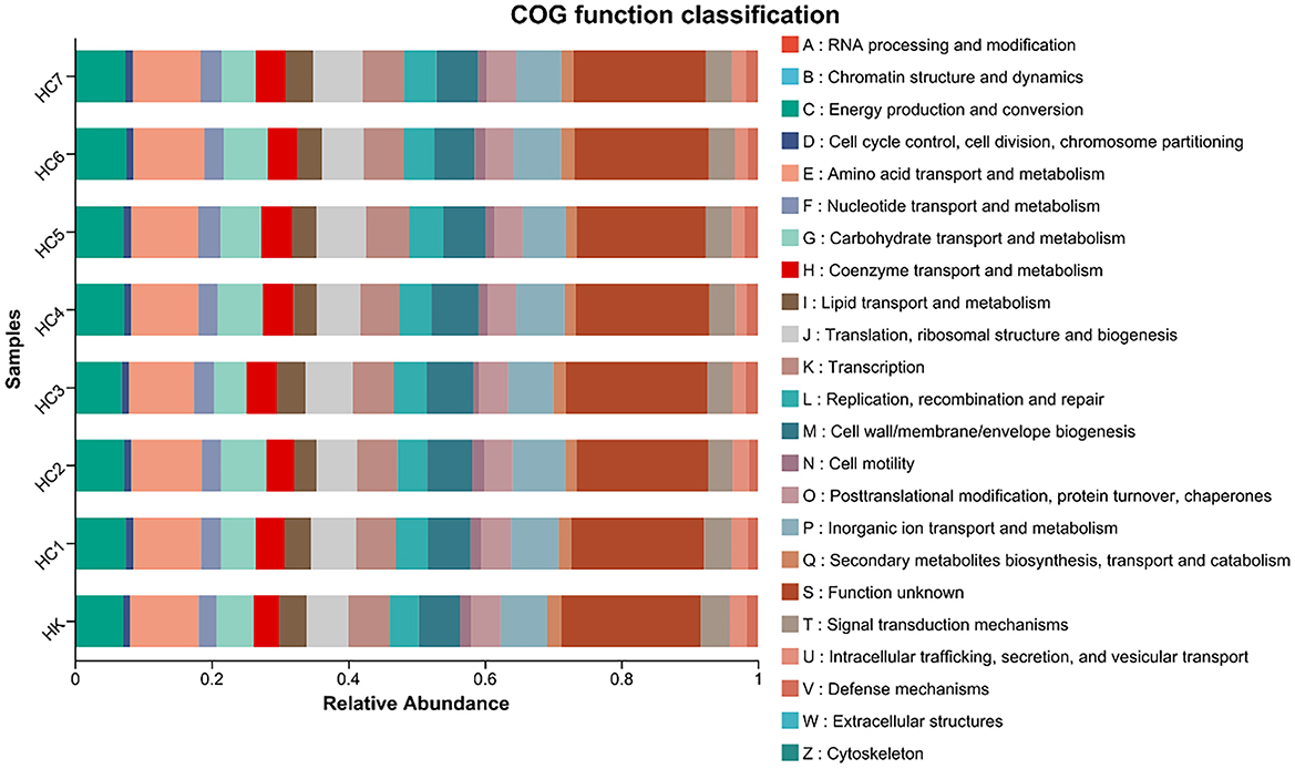Figure 7. COG category distribution during environmental acclimation training (for n = 3 biological replicates).