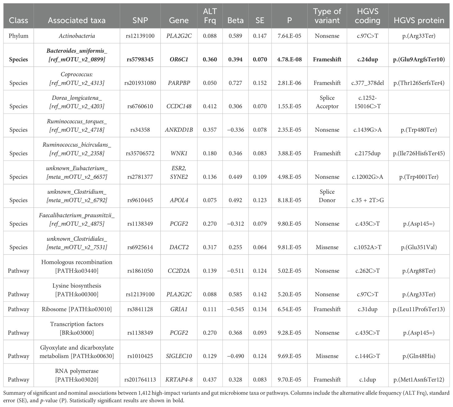 2.9 Association analyses between high-impact annotated variants and microbiome data