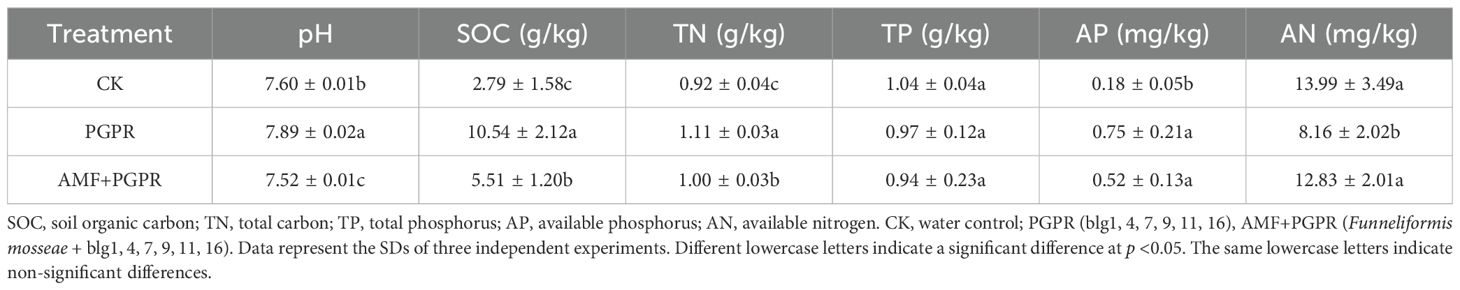 3.2 Soil properties under the PGPR and AMF+PGPR treatments