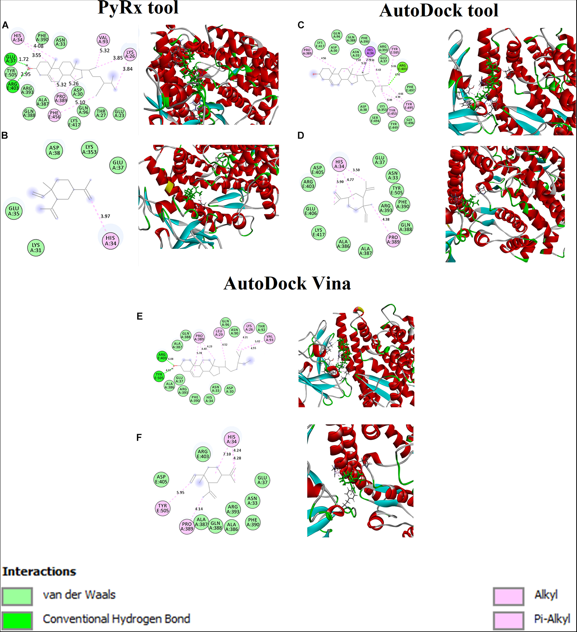 | Beta-sitosterol | Glu37 and Arg403 | Lys26, His34, Val93, Pro389, and Phe456 | Glu23, Thr27, Asp30, Asn33, Gln96, Ala387, Gln388, Phe390, Arg393, and Tyr505 |