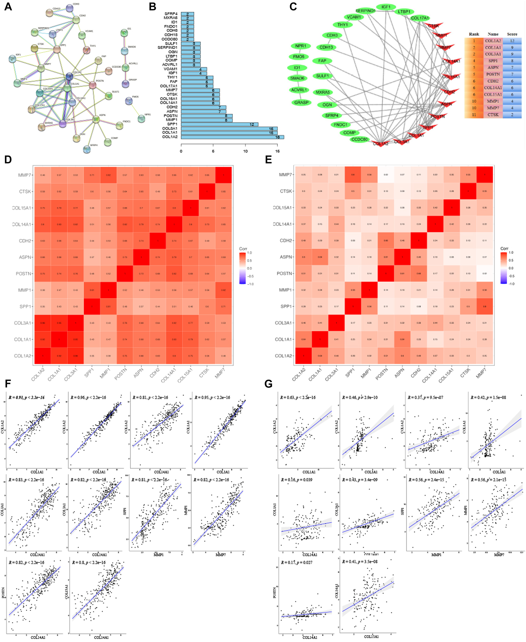 The Search Tool for the Retrieval of Interacting Genes (STRING, https://www. string-db. org/) was used to identify functional interactions between the products of the key genes in the training group. The PPI network was constructed using STRING by adopting the default threshold of a combined score >0.6. Then, the number of nodes of all the related proteins in the PPI network was counted using the R software and visualized using Cytoscape 3.8.2.
