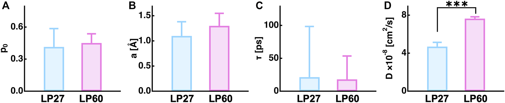 | p 0 | a [Å] | τ [ps] | D × 10−8 [cm2/s] | |